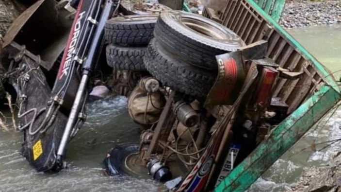 Bolu'da kepçe taşıyan kamyon 100 metreden dereye devrildi: 1 ölü