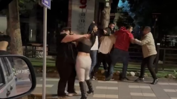 Kentte gece saatlerinde iki grup arasında çıkan kavgada yumruklar havada uçuştu. Kavgayı çevredeki vatandaşlar güçlükle ayırırken o anlar, cep telefonu kamerasına yansıdı.
