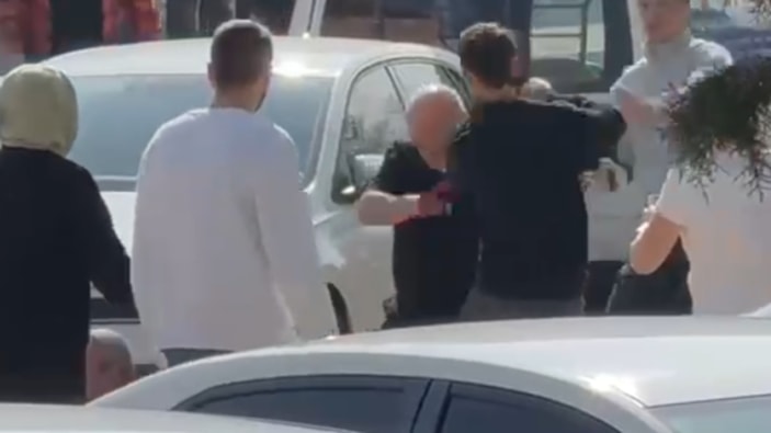 Taraflar güçlükle sakinleştirilirken kavga anları, bir vatandaşın cep telefonu kamerasına yansıdı.
