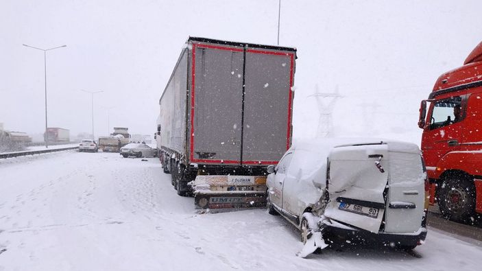 TEM üzerinde kar nedeniyle 20 otomobil ve 4 tırın karıştığı zincirleme trafik kazasında 5 kişi yaralandı.
