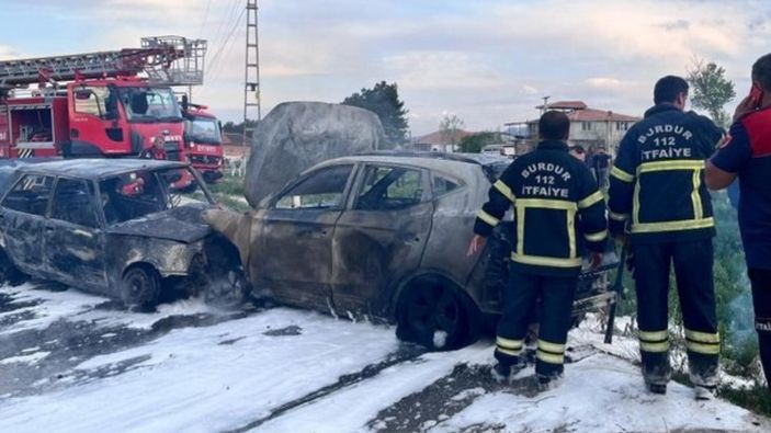 Burdur'da çarpışan iki otomobil yandı: 1 ölü 4 yaralı