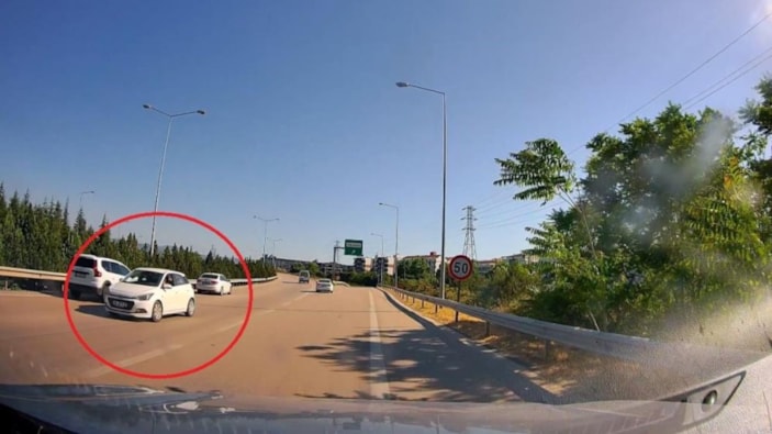 Otobanın orta şeridinde ters istikamette ilerlerken yaşadığı paniğe dair her an, araç içi kameralarına net şekilde yansıdı.