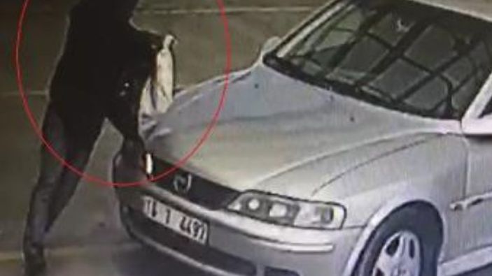 Kimliği belirsiz kişi ise elindeki poşetlerle sürücü koltuğuna geçip, otomobille kaçtı. Bu anlar, iş yerinin güvenlik kamerasınca saniye saniye kaydedildi.