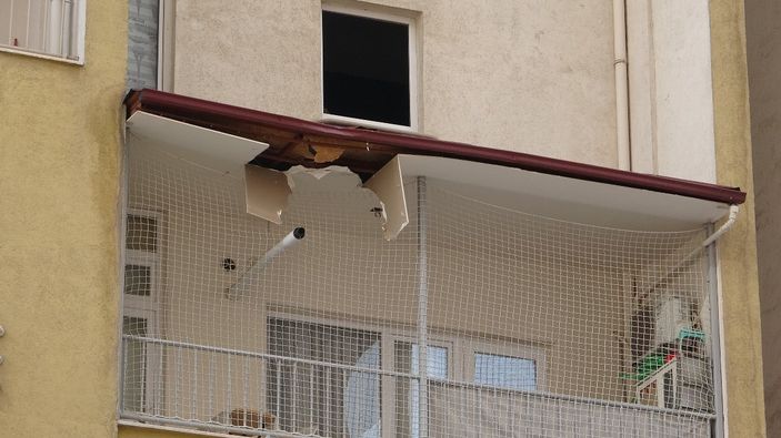 Hızla aşağıya hareket eden Ç.Y., zemine çakılmaya 10 metre kala, apartmanın 3.katındaki balkonun çatısına düştü.