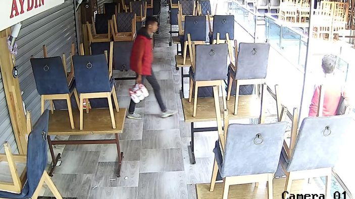 Hırsızlar, restoranın girişinde bırakılan bir paket ayranı çalarak gözden kayboldu.