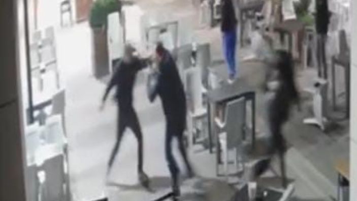 Saldırı sonucu 3 kişi yaralanırken yaralının arkadaşı, sandalyeyle müdahale ederek saldırganı etkisiz hale getirdi.