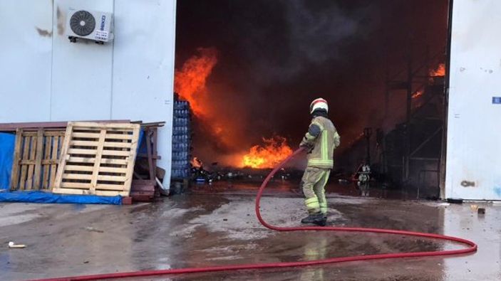 Yangın, alevlerin bitişikteki 2 depoya daha sıçraması üzerine büyüdü.