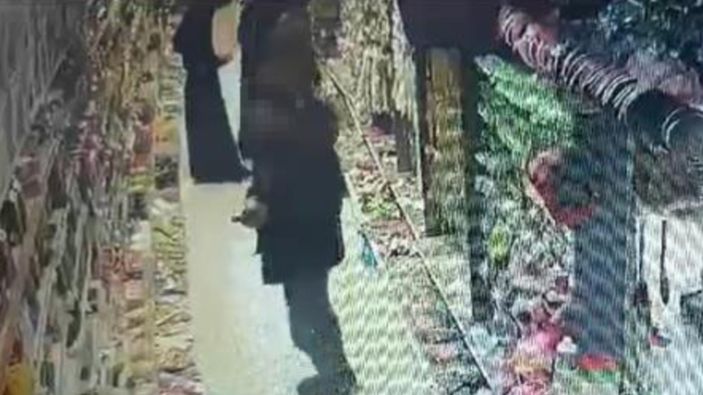 Bursa'nın İnegöl ilçesi Sinanbey Mahallesi'ndeki bir ucuzluk mağazasına giren şüpheli raflardaki ürünleri alıp incelemeye başladı.