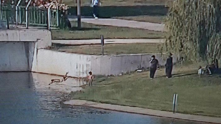 Durumu fark eden güvenlik görevlisi Furkan Mercan, hızla suya atlayarak çocuğu kurtardı ve ailesine teslim etti.