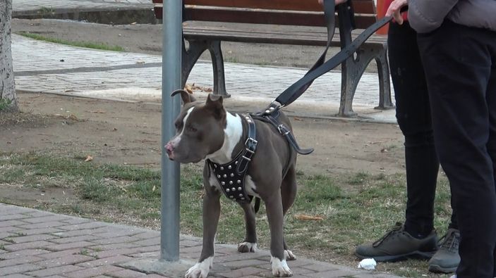 Parka terk edilen pitbull, çevredekilerin kemerli müdahalesiyle kontrol altına alınarak belediye ekiplerine teslim edildi.