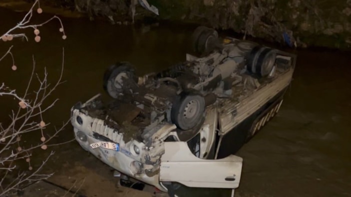 Dönel kavşağı aşan kamyonet, dereye uçtu.