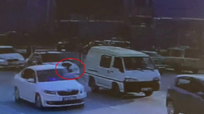 Çakarlı otomobilden havaya ateş açıldığı anlar, çevredeki bir iş yerinin güvenlik kamerasına yansıdı.