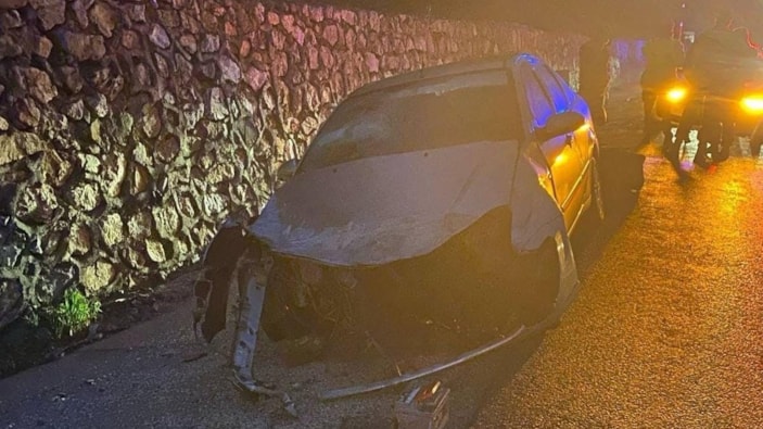 Yağış nedeniyle kayganlaşan yolda sürüklenen otomobil Mezit 7 mevkiinde istinat duvarına çarptı.
