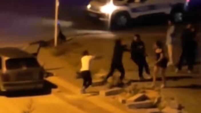 Kavga anları çevredeki bir vatandaşın cep telefonu kamerasına saniye saniye yansıdı.