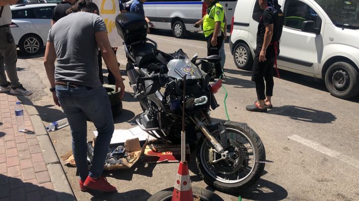 Bursa'nın Yıldırım ilçesindeki Selçukbey Caddesi'nde İl Emniyet Müdürlüğü Asayiş Şube Müdürlüğü Motosikletli Asayiş Timleri'nde görevli 34 yaşındaki komiser Yahya Balcı'nın kullandığı motosiklet, karşı yönden gelip sola dönüş yapmak isteyen 16 J 1422 plakalı otomobile çarptı.