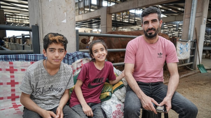 Henüz 12 yaşında olan Aytaç Özmen ile 8 yaşındaki kardeşi Ecrin Özmen, sabahın erken saatlerinden itibaren babalarına yardım ederek hayvanların bakımını üstleniyor.
