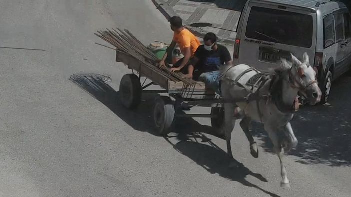 İnşaattan demir çalan 2 hırsızın at arabasıyla kaçış anı güvenlik kameralarına yansırken, polis şüphelilerin peşine düştü.