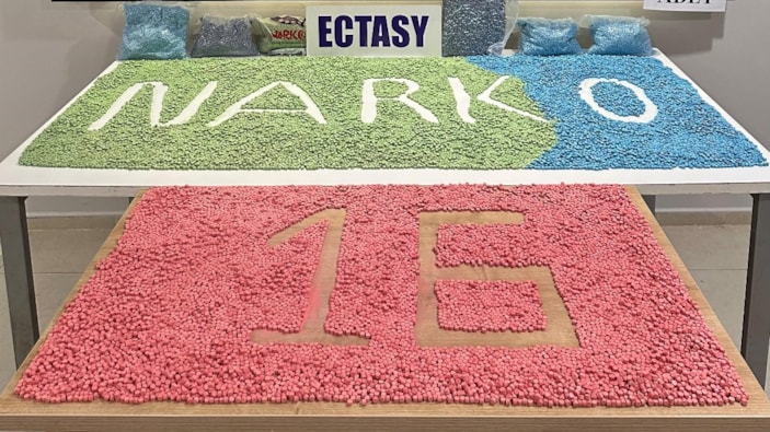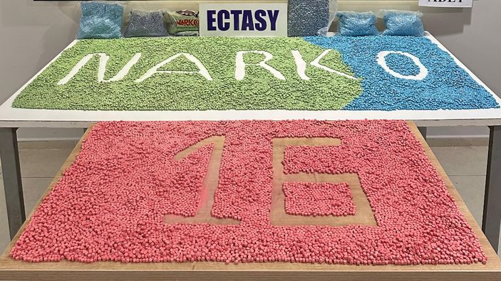 Narkotik köpeği Lizz'in de katıldığı operasyonda bir minibüs ve bir hafif ticari araçta yapılan aramada 28 kilo 600 gram (86 bin adet) uyuşturucu ecstasy hap ile 14 kilogram metamfetamin ele geçirildi.