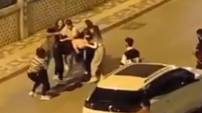 İki kadın grubu arasında başlayan sözlü tartışma kısa sürede büyük bir kavgaya dönüştü. Kadınlar sokak ortasında birbirlerine saldırdı. O anlar kameraya yansıdı.