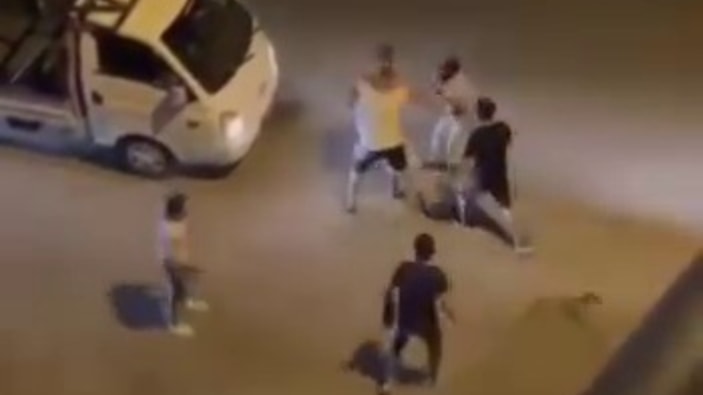 Görüntülerde, çok sayıda kişinin şahsa tekme ve yumruklarla saldırdığı görülüyor.