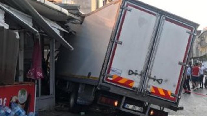 Yol kenarında bulunan park halindeki traktöre çarpan kamyon, ardından kaldırımda dolmuş bekleyen Hatice G. (50), Nerman D. (40), Seda A. (25) ve çocukları Mustafa A. (3) ile Tenzile A.'ya (5) çarparak yaralanmalarına neden oldu. Kamyon, daha sonra Ferdi Harman'a ait markete çarparak durabildi.