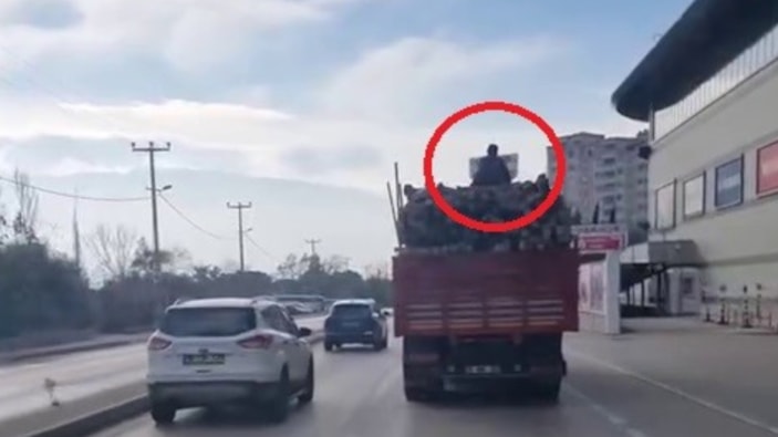 Osmangazi ilçesinde kereste yüklü bir kamyonun üzerinde yolculuk yaparak adeta ölüme meydan okuyan iki genç, çevredeki sürücüler tarafından kayda alındı.