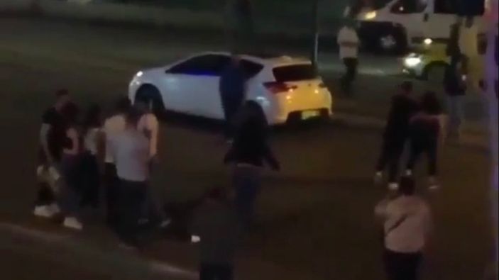 Cadde ortasında sevgilisine mesaj atan şahıs ile kavgaya tutuşan kız, kameraya yansıdı. Çevredekiler, genç kızları ayırmakta güçlük çekti.