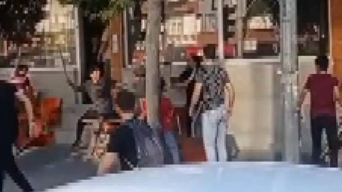 Gençlerin ve küçük çocukların karıştığı sokak kavgasında sopalar ve sandalyeler havada uçuştu. O anlar kameraya yansıdı.