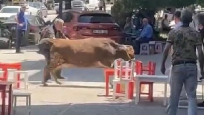 Neyse ki dana, sahibi ve çevredeki vatandaşların çabasıyla kısa sürede yakalanarak sakinleştirildi. Sosyal medyada paylaşılan görüntüler yoğun ilgi görürken, birçok kişi bu tarz olayların bayramın “en unutulmaz renklerinden” biri olduğunu dile getirdi.
