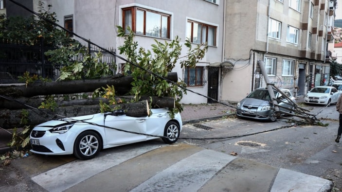 Sabah saatlerinde ise ortaya çıkan manzara bölge halkını korkuttu. Cadde üzerinde bir ağaç ve elektrik direği araçların üzerine devrildi.