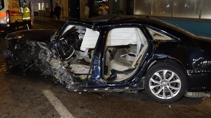 Bursa'da lüks otomobil bariyerlere saplandı VİDEO