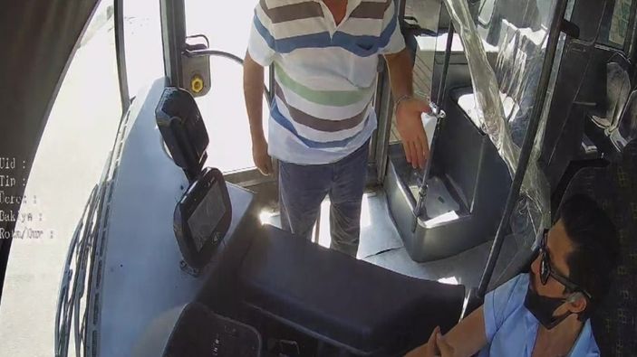 Bursa'da otobüs şoförü ve yolcu arasında maske kavgası ViDEO
