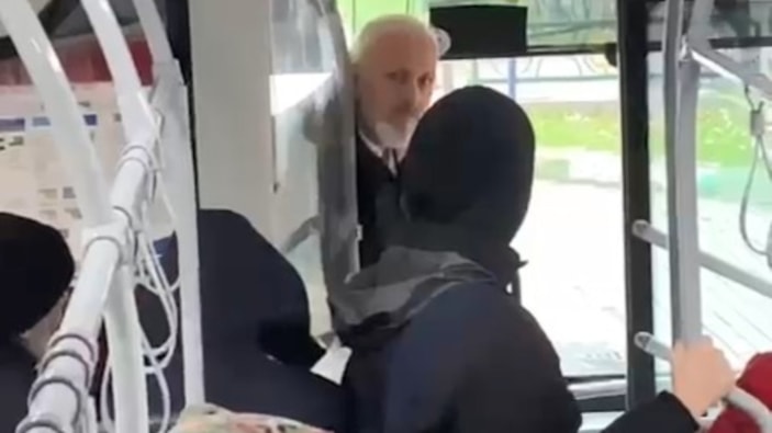 Yaşlı bir yolcunun araçtan inmesi için sürücüden beklemesini isteyen kadın, neye uğradığını şaşırdı. Otobüs şoförü, öfkeyle kadına tepki gösterdi. Tartışma kameraya yansırken, tarafları otobüsteki yolcular sakinleştirmeye çalıştı.