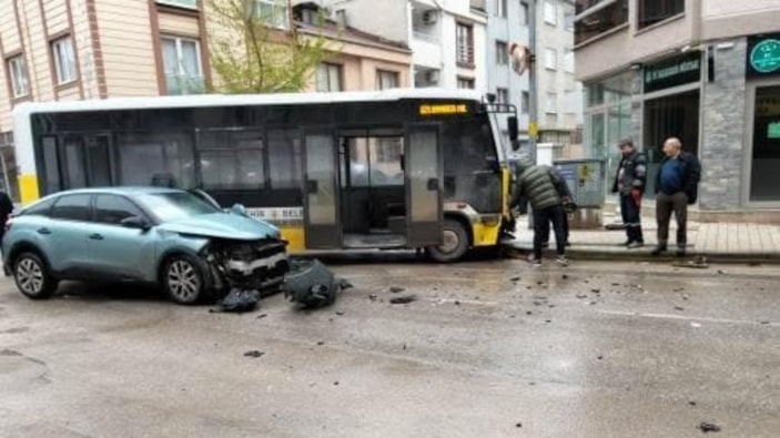 Bursa'da otomobil, halk otobüsüne çarptı: 3 yaralı