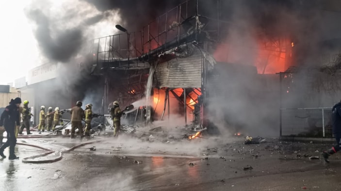 Zaman zaman patlamaların yaşandığı yangına, itfaiye ekiplerinin müdahalesi sürüyor.