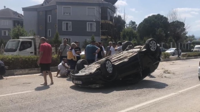 Kazada sürücü ile araçta bulunan Tolga Çalışkan (30) ve Ömür Efe C. (11) yaralandı.