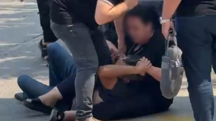 Eski kocasını cadde ortasında yakalayan kadın, dolandırıldığını öne sürerek darp etmeye başladı.