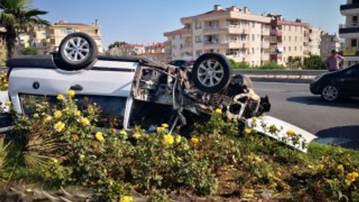 Bursa'da sürücü takla atan otomobilden sağ çıktı