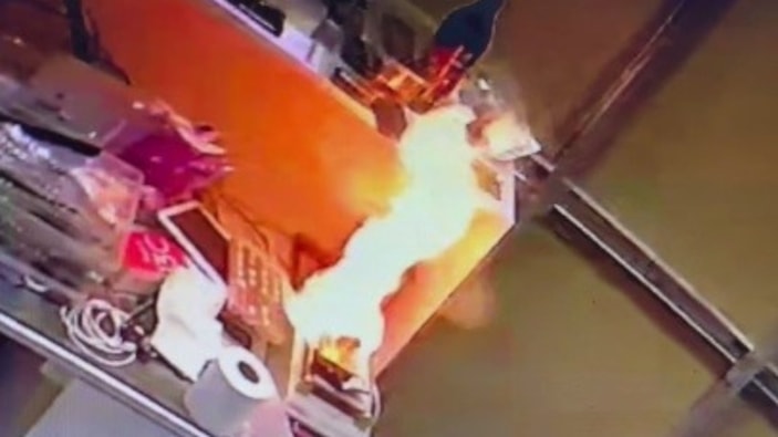 İlk önce patlama meydana geldi ve sonra batarya birden alev aldı. o anlar anbean güvenlik kamerasına yansıdı.