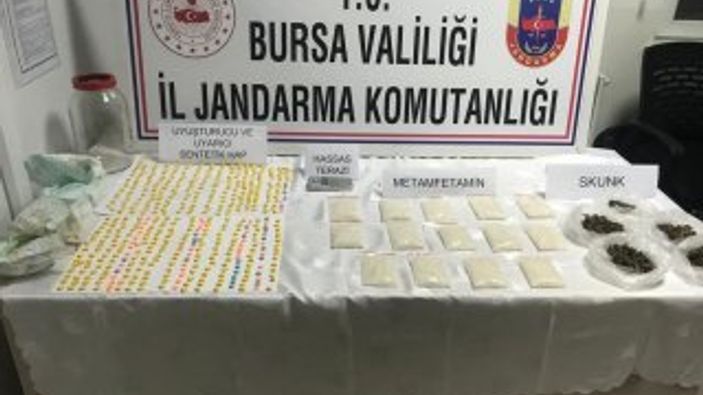 Bursa'da bir eve düzenlenen operasyonda, bebek bezlerine sarılı 1 kilogram metamfetamin, 250 gram skunk ve 700 adet uyuşturucu hap ele geçirildi.