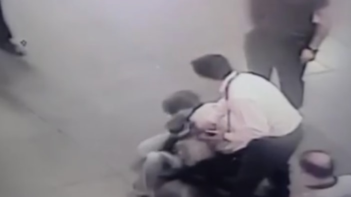 Görevliler daha ne olduğunu bile anlamadan küfretmeye başlayan H.G., kendisini sakinleştirmeye çalışan kadın güvenlik görevlisi F.Y.'ye saldırınca iki kadın yere düştü.