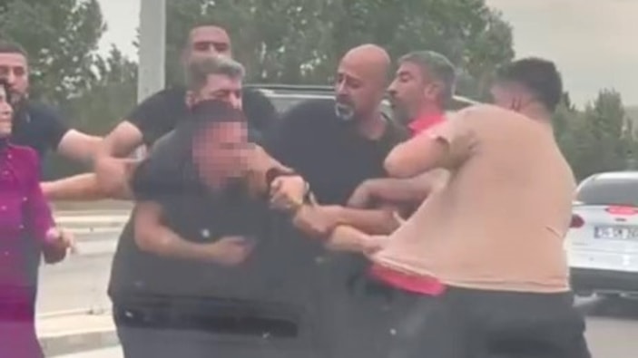 Anayol üzerinde başlayan kavgada yumruklar havada uçuştu.