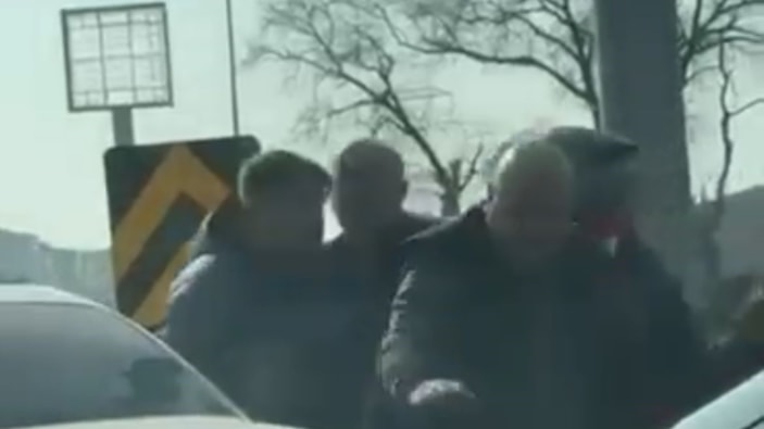 Öfkeli tarafların caddeyi ringe çevirdiği anlar kameraya yansırken, tarafları çevredekiler ayırdı.