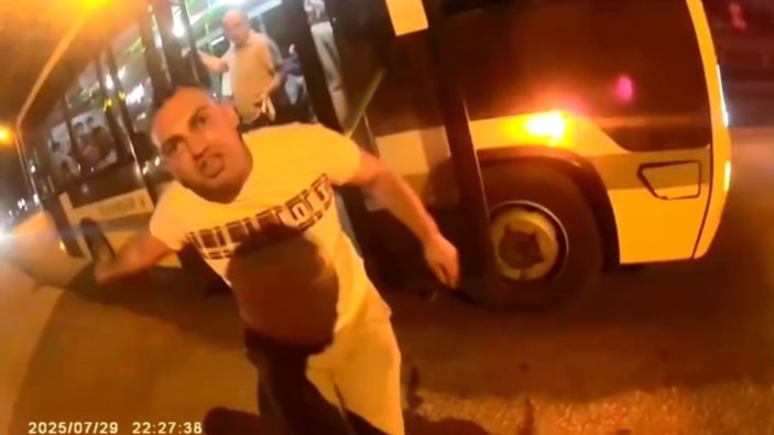 Olayın ardından otobüs şoförü, aracını yol kenarına çekip indi ve yol kenarında bekleyen motosikletlinin üzerine yürüyerek tartışma çıkardı.