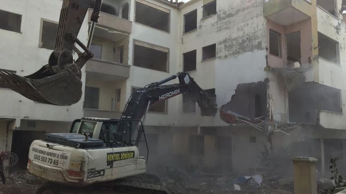Kentsel dönüşüm çalışmaları kapsamında deprem riski taşıyan binaların yıkım çalışmaları sürüyor.