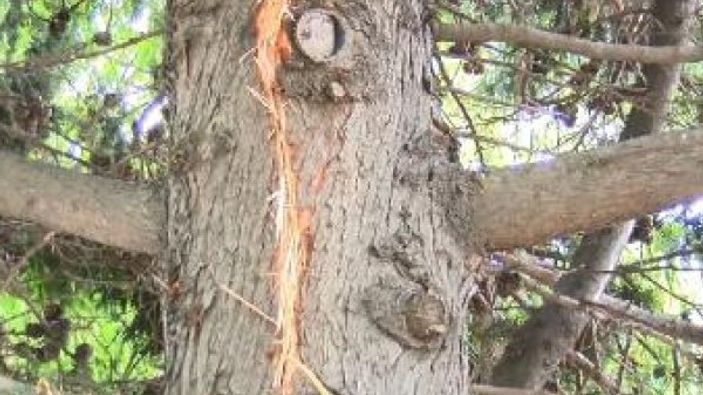 Yıldırım düşen ağaçta, hasar oluştuğu görüldü.