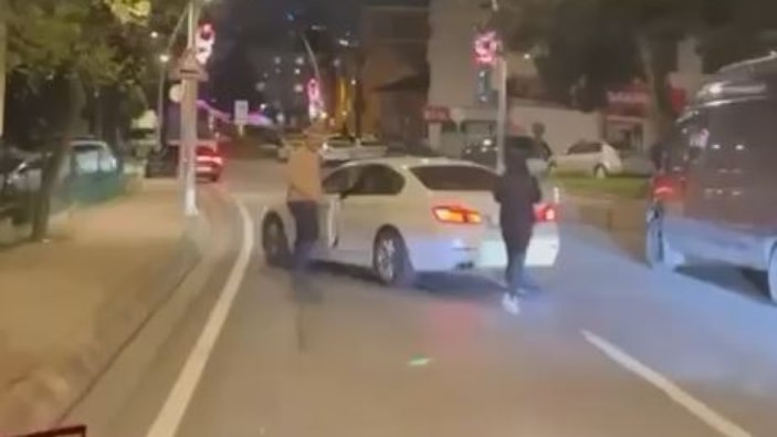 Çıkan tartışma sonrasında otomobil sürücüsü diğer aracın önünü kesti.