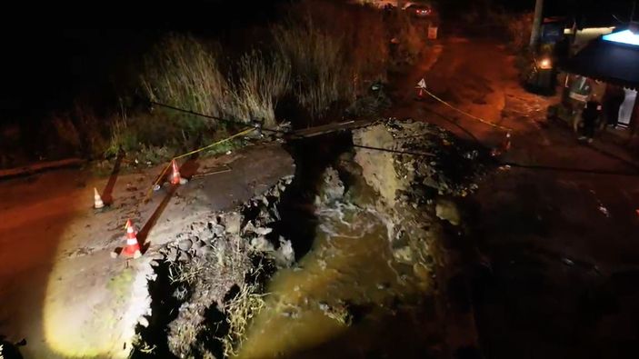 Çanakkale'de şiddetli yağış sonrası köprüde çökme