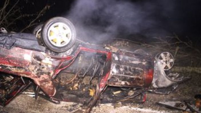 Çanakkale'de takla atan aracın alev alması sonucu sürücü ağır yaralandı.