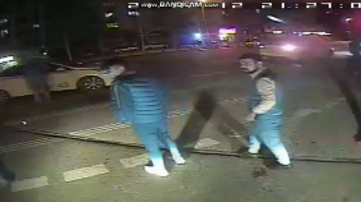 Özdoğan’ı gören taksici ve arkadaşları, otobüs şoförünü darbetmeye başladı. O anlar, güvenlik kamerasına yansıdı.